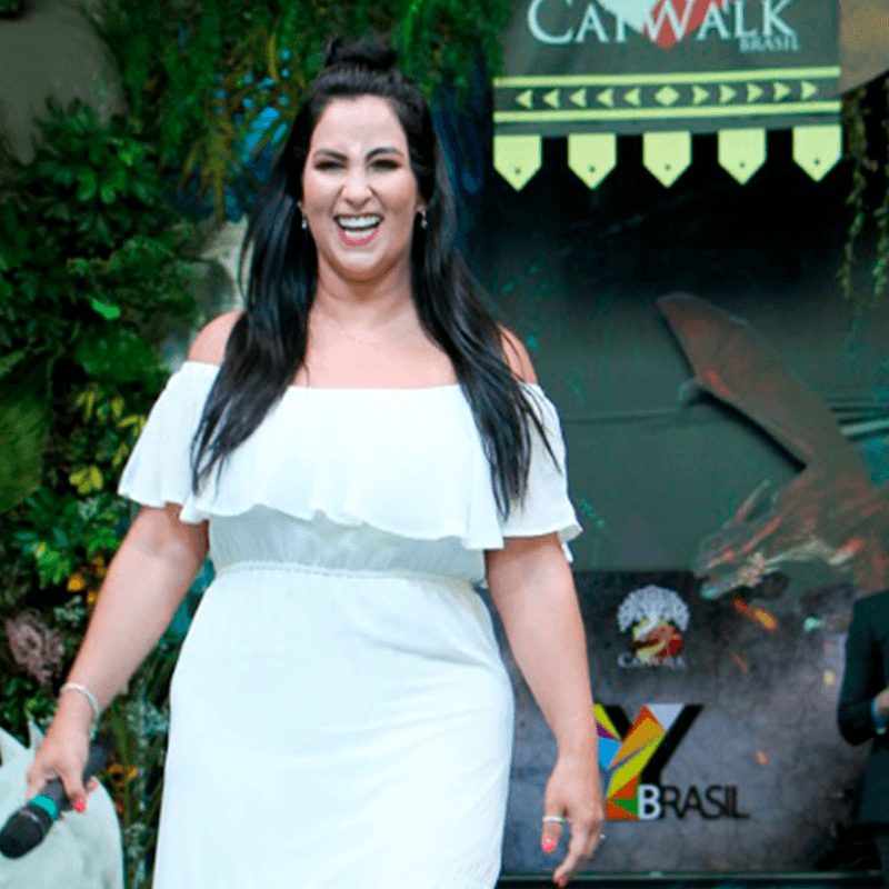 Fabíola Gadelha esbanja simpatia em evento de moda. A apresentadora e repórter da RecordTv, Fabíola Gadelha, também conhecida como rabo de arraia, esbanjou simpatia no Catwalk Brasil, evento que aconteceu neste sábado (03), no Boavista Shopping, zona sul da capital paulista.
